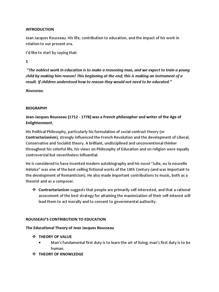 Jean Jacques Rousseau Contribuitions To Education Pdf Emile Or On Education Jean Jacques Rousseau